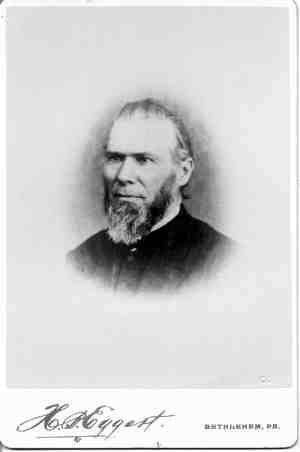 34. Christian Meyer Rev.,1,2,5,7,13,14 son of Johann Meyer 1,2 and Elizabeth Krebs,1,2 was born on 30 Aug 1814 in Kerchendorf, Oberampt, Seftegen Canton, Berne, Switzerland,2,6,7,10 died on 22 Feb 1873 in Bethlehem, Lehigh County, Pennsylvania2,6,7,10 at age 58, and was buried in Easton Cemetery, Northampton County, Pennsylvania.2,6,7