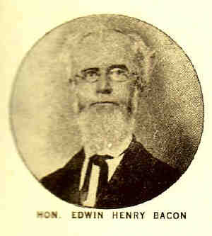 60. Edwin Henry* Bacon Major,1,2 son of Thomas* Bacon II 1,2 and Sarah Holcombe,1,2 was born in 1811 in Simsbury, Liberty, GA1,2 and died in 18801,2 at age 69.