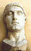 Constantine later claimed to have had a vision on the way to Rome,during the night before battle. In this dream he supposedly saw the'Chi-Ro', the symbol of Christ, shining above the sun. Seeing this asa divine sign, it is said that Constantine had his soldiers paint thesymbol on their shields. Following this Constantine went on to defeatthe numerically stronger army of Maxentius at the Battle at theMilvian Bridge (Oct AD 312).